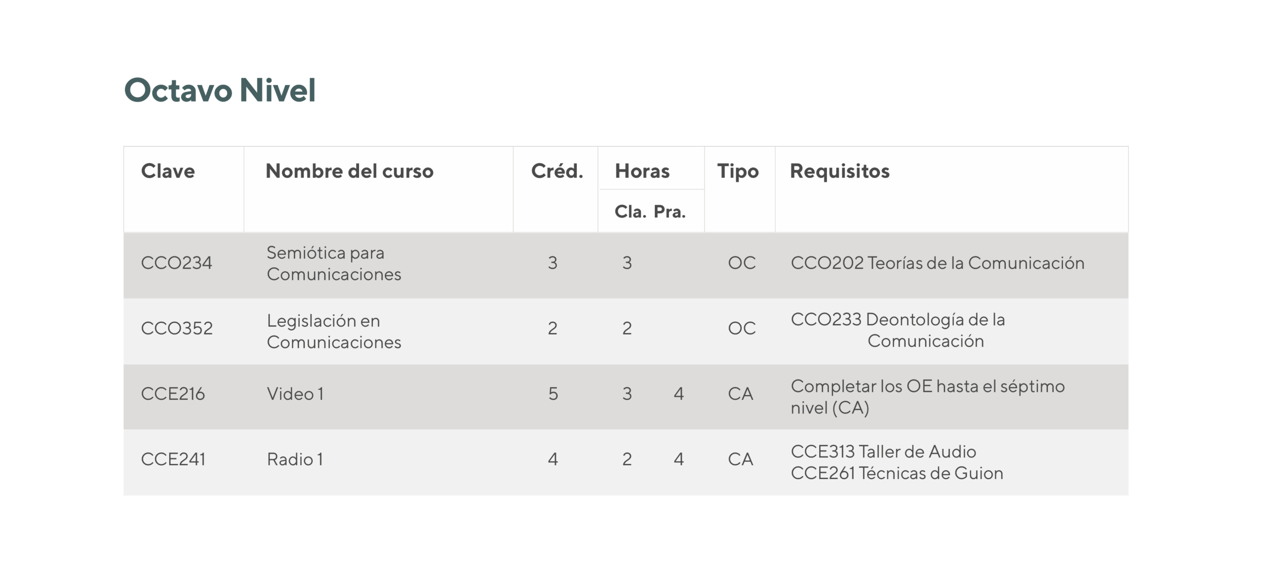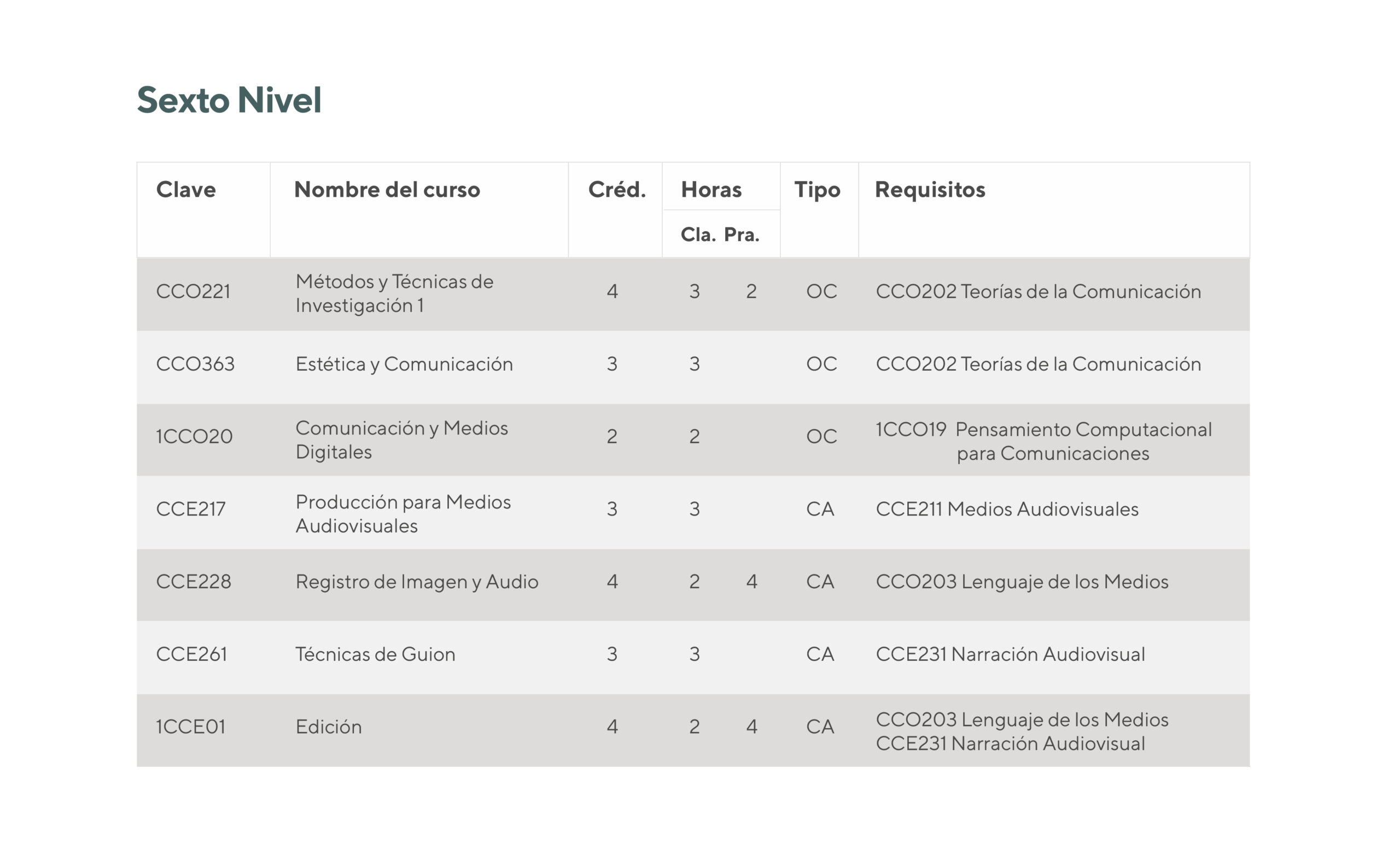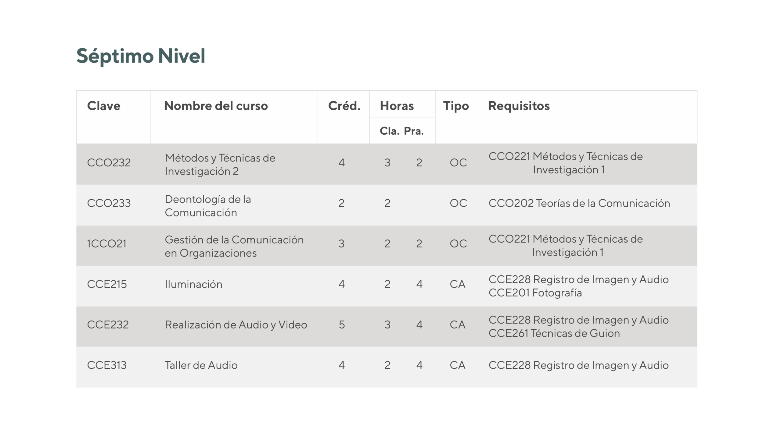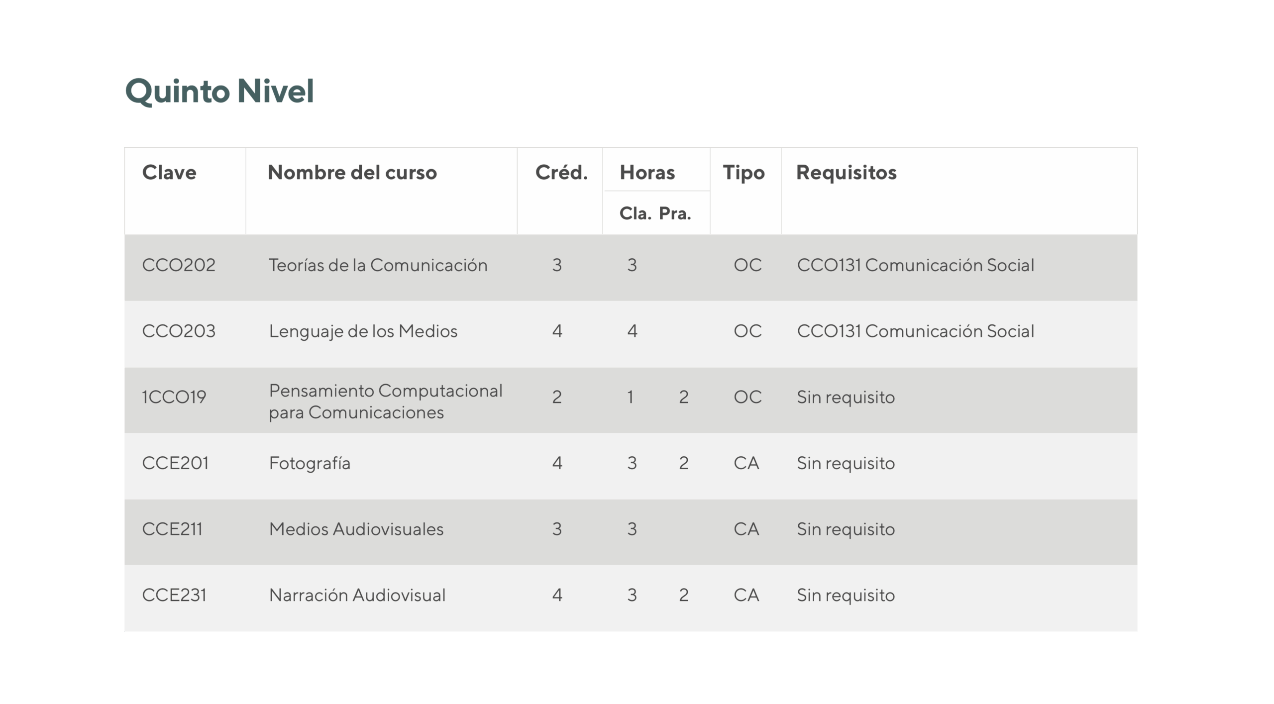 La carrera de Comunicación Audiovisual (CA) se desarrolla en diez semestres (5 años) divididos en: