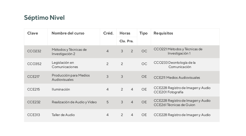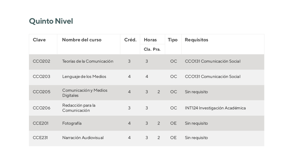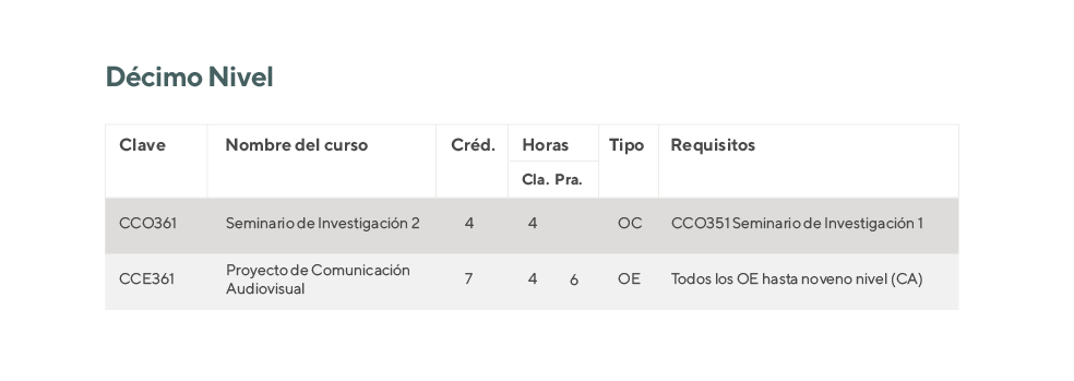 La carrera de Comunicación Audiovisual (CA) se desarrolla en diez semestres (5 años) divididos en: