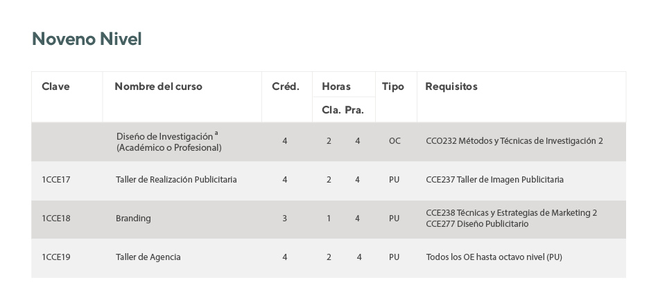 1CCO23 Diseño de Investigación Profesional (4 cr). Req.: CCO232
