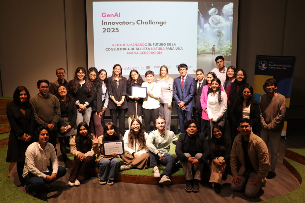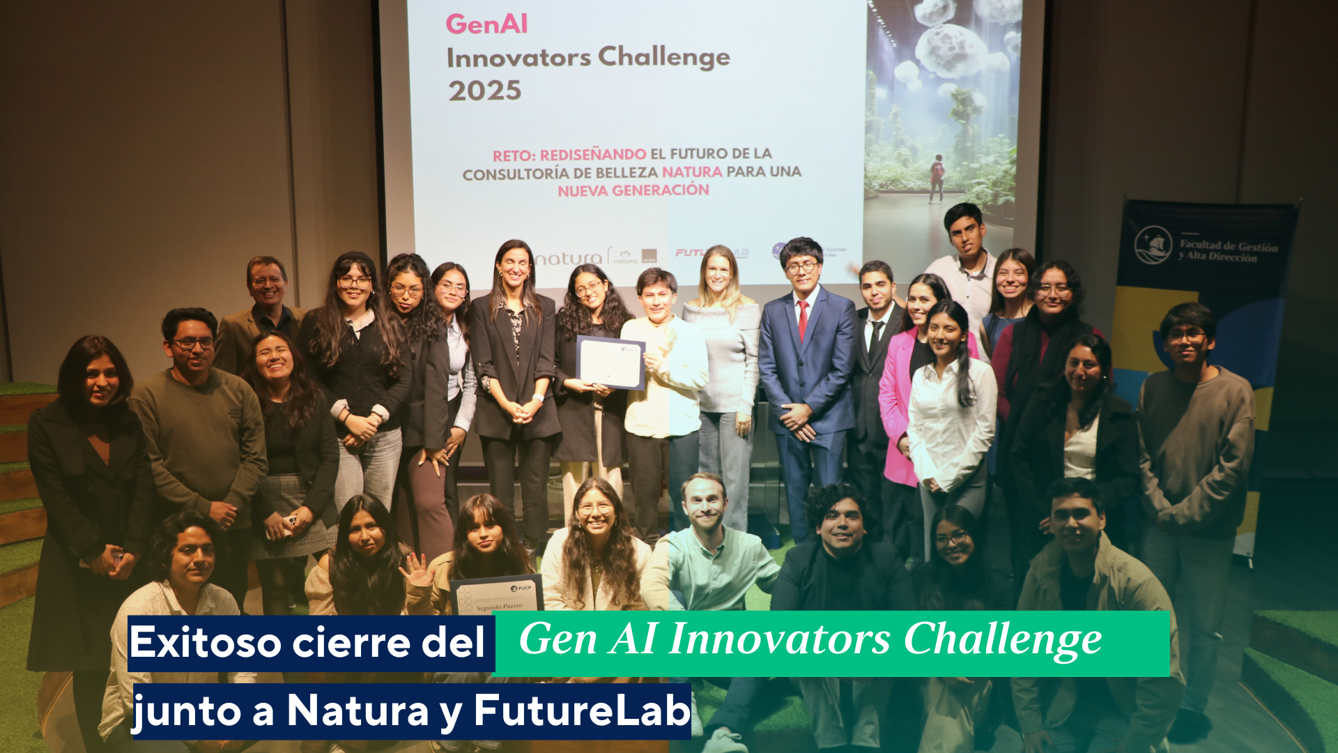 El viernes 26 de septiembre se llevó a cabo en el Open PUCP el cierre del I Desafío Gen AI Innovators Challenge – Natura, PUCP & FutureLab, una experiencia innovadora que retó a los estudiantes de la Facultad de Gestión y Alta Dirección a aplicar sus conocimientos en un contexto real, con el apoyo de herramientas de Inteligencia Artificial Generativa.