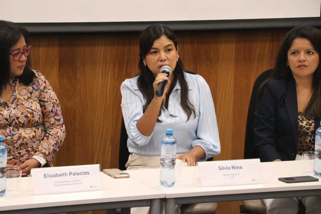 Durante la jornada, el primer panel, titulado “Gobernanza del Dato y de la IA: fundamentos para una transformación sostenible”, reunió a Elizabeth Palacios (Grupo ILP Holding – Honduras), Silvia Nina (TASA), Guisella Lluen (Compartamos Banco Perú) y Rosa Pozos (Allianz México). Las panelistas coincidieron en que la calidad de la información es un factor crítico para el éxito de cualquier iniciativa de inteligencia artificial, y subrayaron que una adecuada gobernanza permite mejorar la toma de decisiones, así como garantizar sostenibilidad, transparencia y confianza en los procesos organizacionales. Asimismo, enfatizaron la necesidad de promover una cultura organizacional orientada a datos, donde la tecnología se articule con el conocimiento del negocio y las capacidades humanas.