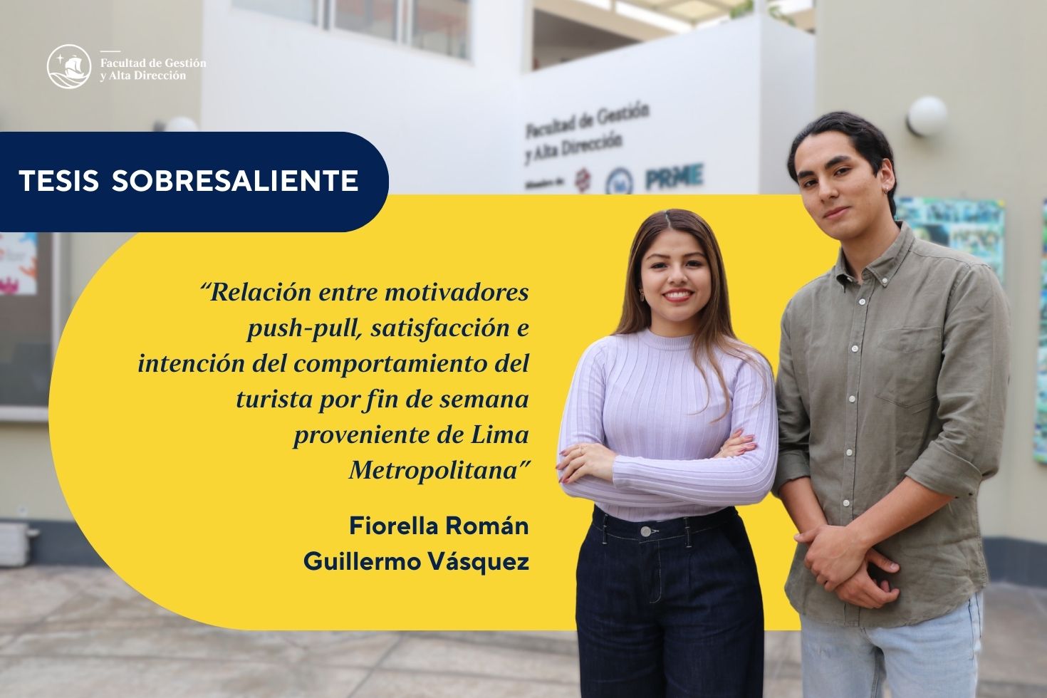 El 9 de septiembre, Guillermo Vásquez Sánchez y Fiorella Román Motta sustentaron su tesis titulada “Relación entre motivadores push-pull, satisfacción e intención del comportamiento del turista de fin de semana proveniente de Lima Metropolitana”, obteniendo la calificación de Sobresaliente. El jurado estuvo conformado por Berlan Rodríguez Pérez (asesor), Ana María Alemán y María Elena Sánchez Zambrano.