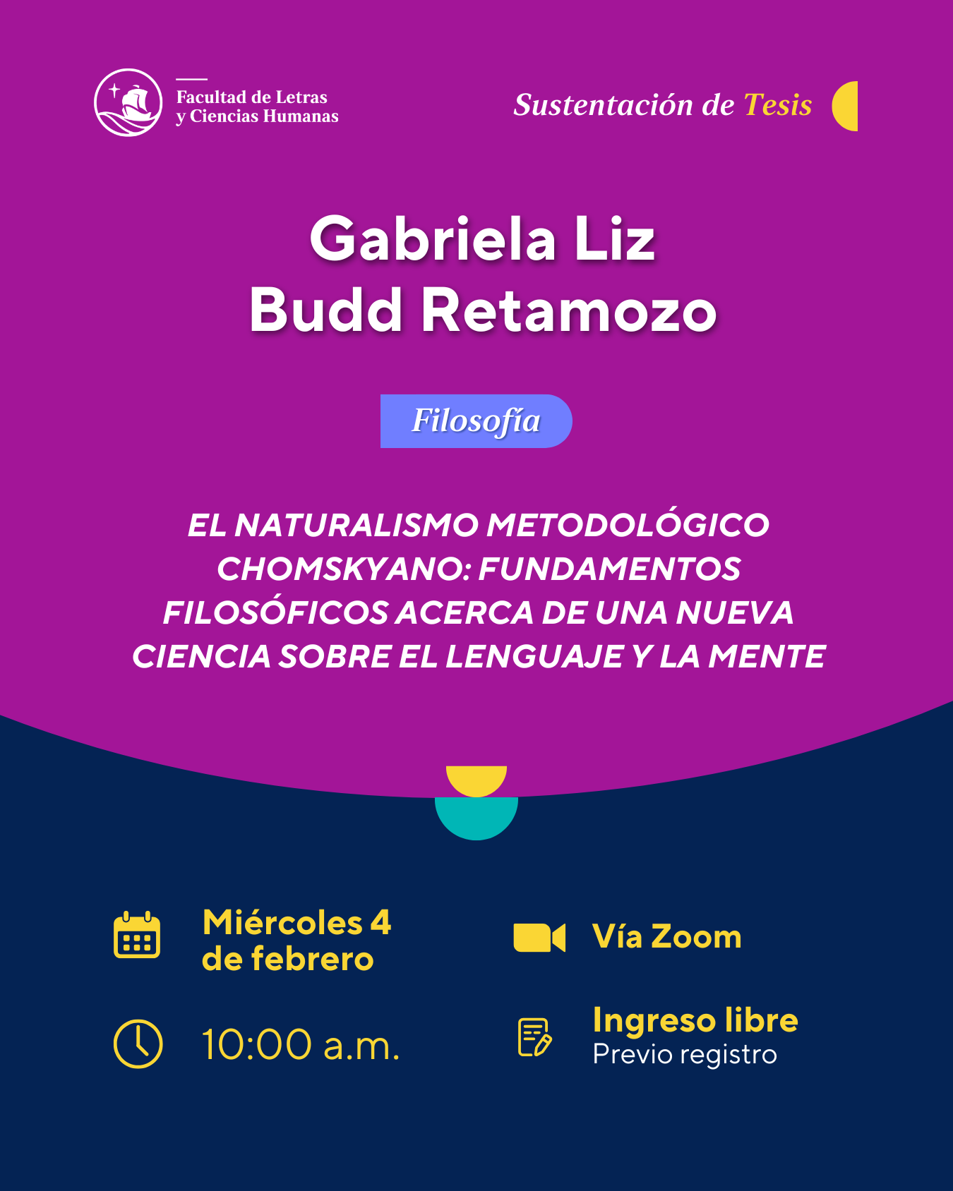 [post_content] => La Facultad de Letras y Ciencias Humanas PUCP invita al público a la sustentación de tesis de Gabriela Liz Budd Retamozo, quien optará por el título de Licenciada en Filosofía con la investigación: